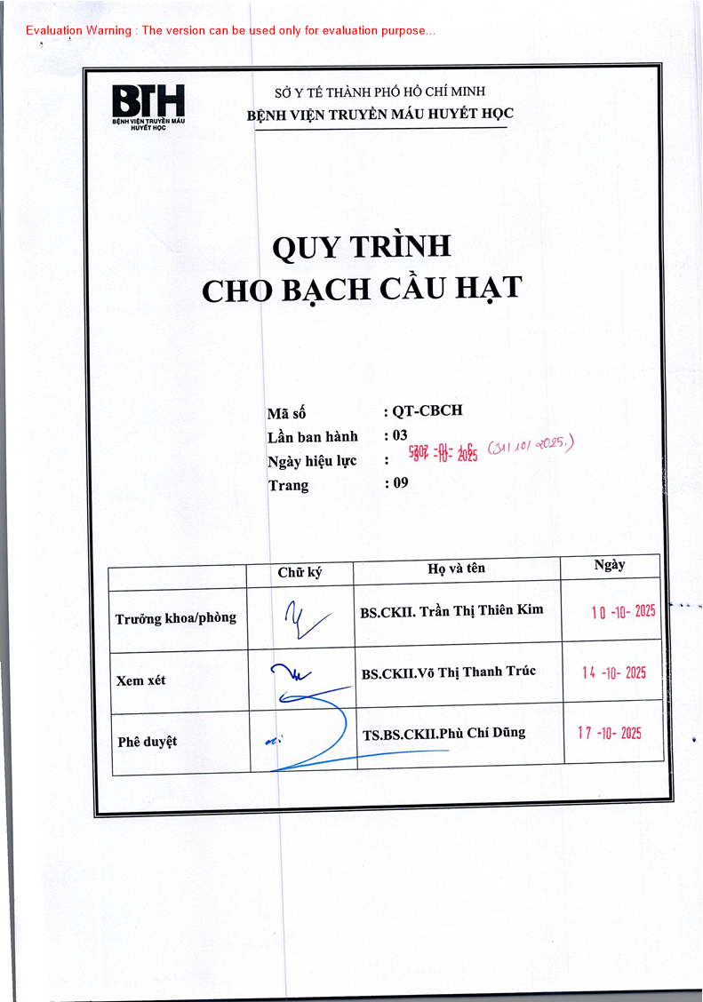 QUY TRÌNH CHO BẠCH CẦU HẠT