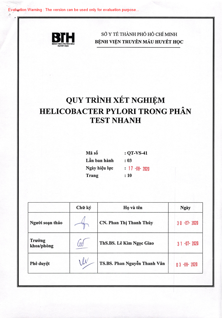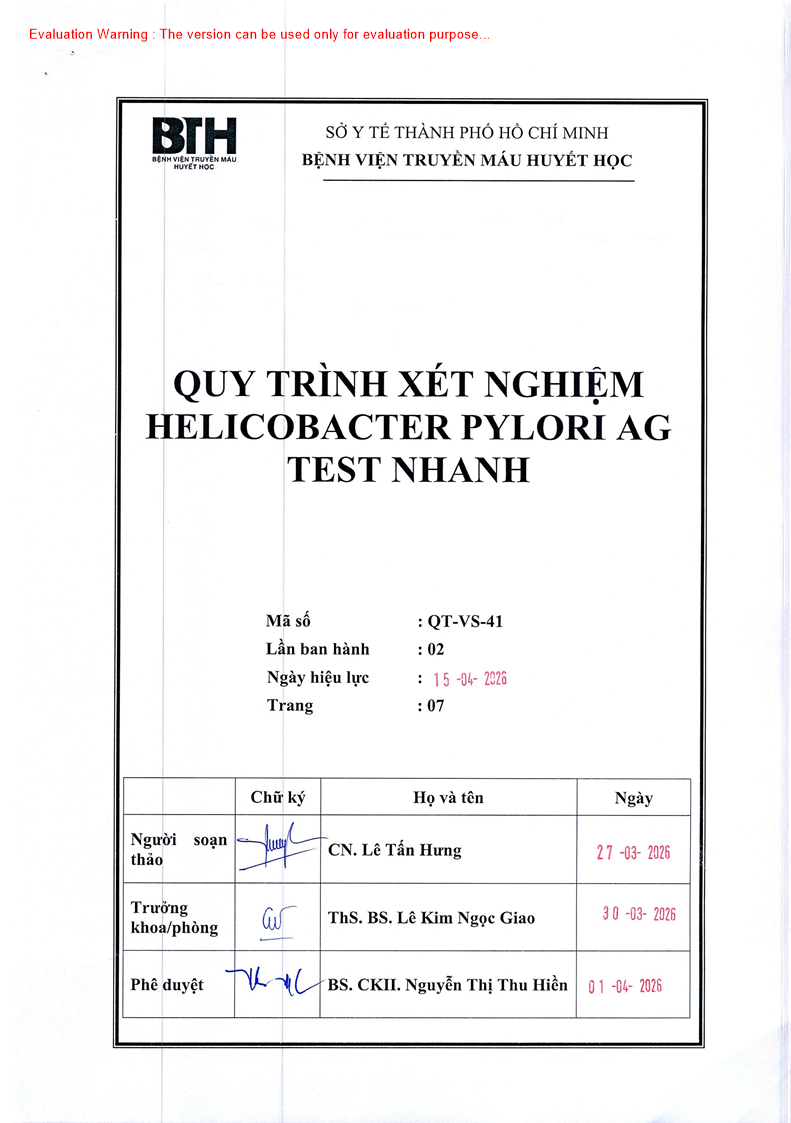 QUY TRÌNH XÉT NGHIỆM HELICOBACTER PYLORI AG TEST NHANH