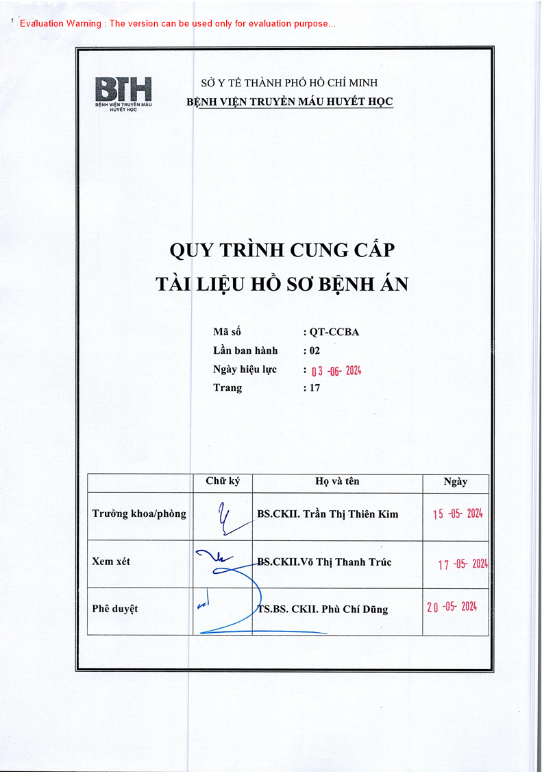 QUY TRÌNH CUNG CẤP TÀI LIỆU HỒ SƠ BỆNH ÁN